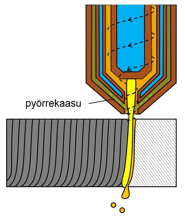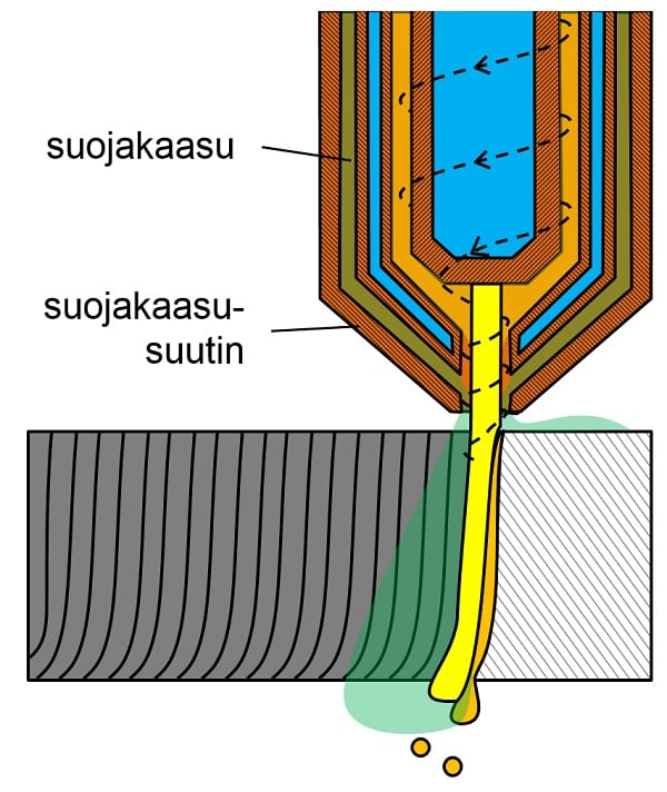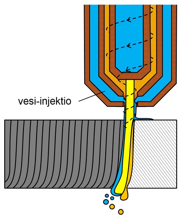 • Käytännössä ainoa vaihtoehto leikattaessa keskipaksuja ja paksuja runsasseosteisia teräksiä ja alumiineja