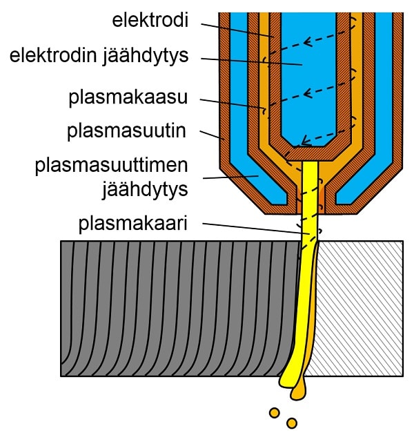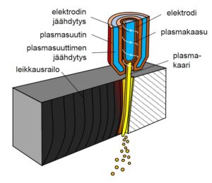 PLASMALEIKKAUSPOLTTIMESSA elektrodi on sijoitettu plasmasuuttimen sisään, ja elektrodin ympärillä suurella nopeudella virtaava plasmakaasu ionisoituu elektrodin ja työkappaleen välillä palavassa valokaaressa muodostaen plasmakaaren. Plasmasuuttimen kärjessä oleva kapeneva aukko kurouttaa plasmakaaren, minkä ansiosta plasmakaaren energiatiheys ja lämpötila saadaan huomattavasti korkeammaksi kuin vapaasti palavassa valokaaressa.